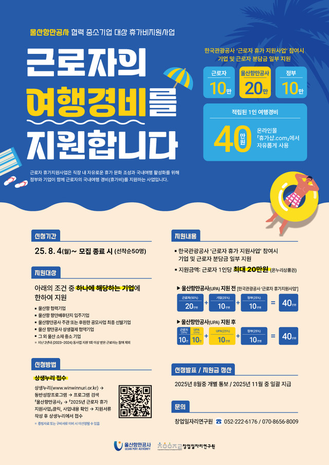 대상: 울산항 연관 중소기업 재직 근로자 (상생누리 신청)